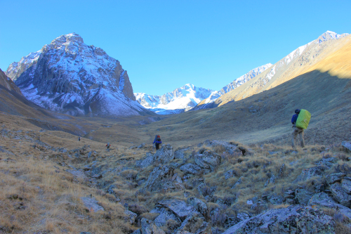 活动说明:早9点30分出发从营地到海拔3555米的库拉阿特腾阿苏达坂直线距离不足4公里,但海拔垂直升高近1000米,在接近达坂的顶部时,有一段坡度将近60度的碎石坡,攀爬非常艰难。翻过库拉阿特藤达阪,行进6公里后下降1400米 ,抵达海拔2500米的谷底原始森林。发源于兰特开曾冰川和蒙格特开曾冰川的河水在谷底汇聚,形成了众多的支流,今天要频繁地在河道中穿行,一天下来淌过十次河。傍晚可以到达狼塔夏季牧场。狼塔夏季牧场位于兰特雪山和蒙格特雪山之下,平均海拔3000米,山势平缓,人迹罕至,是野生动物的天堂。这里是几户哈萨克牧民的夏窝子。当晚扎营在这里。 行程:一棵树营地—库拉阿特藤达阪—尔特兰塔河—狼餐厅营地 用餐:全天含餐 住宿:露营